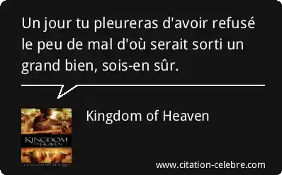 Un jour tu pleureras d'avoir refusé le peu de mal d'où serait sorti un grand bien, sois-en sûr.