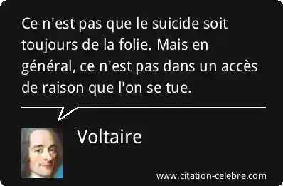 Ce n'est pas que le suicide soit toujours de la folie. Mais en général, ce n'est pas dans un accès de raison que l'on se tue.