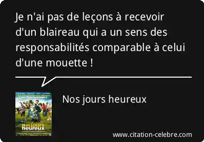 Je n'ai pas de leçons à recevoir d'un blaireau qui a un sens des responsabilités comparable à celui d'une mouette !