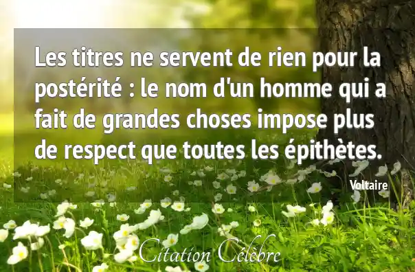 Les titres ne servent de rien pour la postérité : le nom d'un homme qui a fait de grandes choses impose plus de respect que toutes les épithètes.