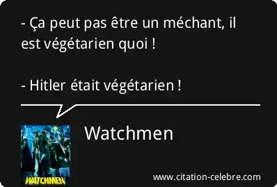 - Ça peut pas être un méchant, il est végétarien quoi ! - Hitler était végétarien !