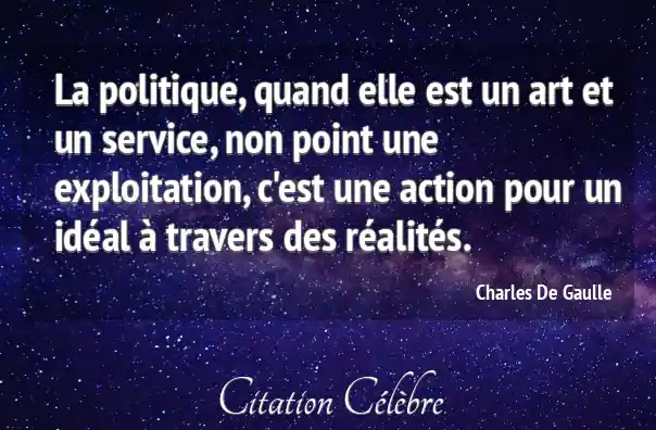 La politique, quand elle est un art et un service, non point une exploitation, c'est une action pour un idéal à travers des réalités.