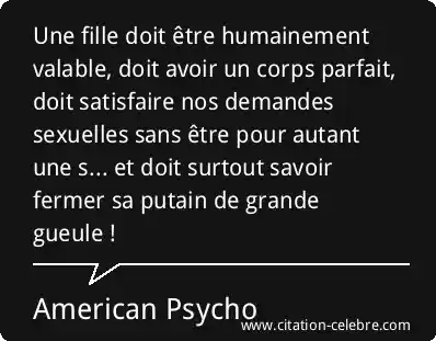 Une fille doit être humainement valable, doit avoir un corps parfait, doit satisfaire nos demandes sexuelles sans être pour autant une s... et doit surtout savoir fermer sa putain de grande gueule !
