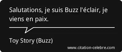 Salutations, je suis Buzz l'éclair, je viens en paix.