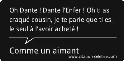 Oh Dante ! Dante l'Enfer ! Oh ti as craqué cousin, je te parie que ti es le seul à l'avoir acheté !