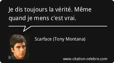 Au sens strict, la phrase « Je dis toujours la vérité. Même quand je mens c'est vrai. » est une contradiction apparente. Elle affirme une véracité absolue, y compris dans l'acte de mentir. Littéralement, elle suggère que toute déclaration faite par Tony Montana, qu'elle soit factuellement exacte ou qu'elle relève d'une fausseté intentionnelle (un mensonge), est pour lui une forme de « vérité ».