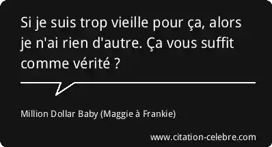 Si je suis trop vieille pour ça, alors je n'ai rien d'autre. Ça vous suffit comme vérité ?