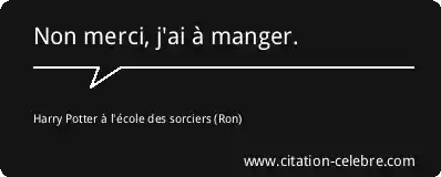 Citation  Harry Potter à l'école des sorciers merci : Non merci, j'ai à manger.... (Ron - film & série)