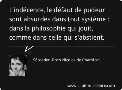 L'indécence, le défaut de pudeur sont absurdes dans tout système : dans la philosophie qui jouit, comme dans celle qui s'abstient.