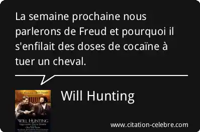 La semaine prochaine nous parlerons de Freud et pourquoi il s'enfilait des doses de cocaïne à tuer un cheval.