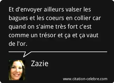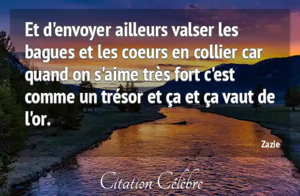 Et d'envoyer ailleurs valser les bagues et les coeurs en collier car quand on s'aime très fort c'est comme un trésor et ça et ça vaut de l'or.