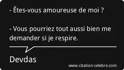 - Êtes-vous amoureuse de moi ? - Vous pourriez tout aussi bien me demander si je respire.