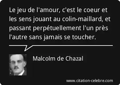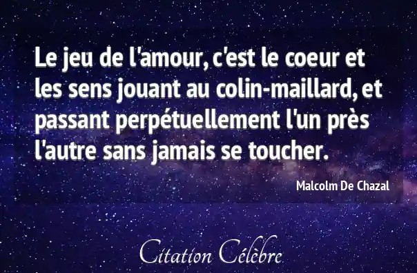 Le jeu de l'amour, c'est le coeur et les sens jouant au colin-maillard, et passant perpétuellement l'un près l'autre sans jamais se toucher.
