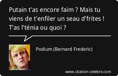 Putain t'as encore faim ? Mais tu viens de t'enfiler un seau d'frites ! T'as l'ténia ou quoi ?