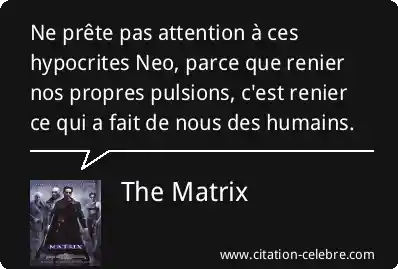 Ne prête pas attention à ces hypocrites Neo, parce que renier nos propres pulsions, c'est renier ce qui a fait de nous des humains.