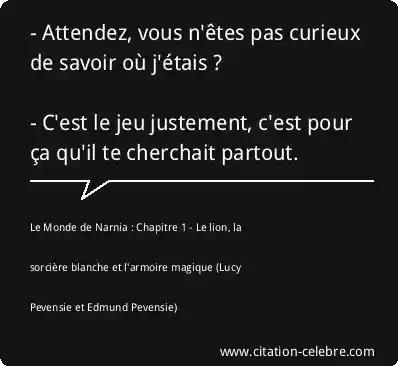 - Attendez, vous n'êtes pas curieux de savoir où j'étais ?