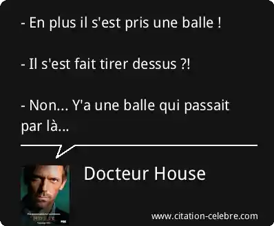 - En plus il s'est pris une balle ! - Il s'est fait tirer dessus ?! - Non... Y'a une balle qui passait par là...