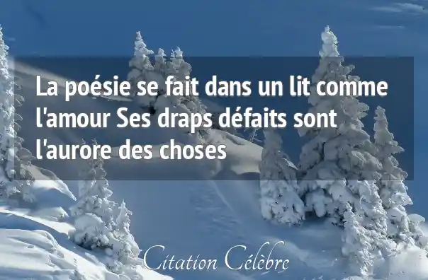 La poésie se fait dans un lit comme l'amour Ses draps défaits sont l'aurore des choses