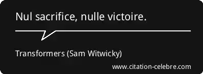 Citation  Transformers victoire : Nul sacrifice, nulle victoire.... (Sam Witwicky - film & série)