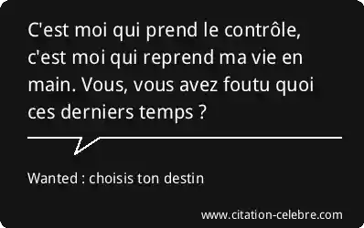 C'est moi qui prend le contrôle, c'est moi qui reprend ma vie en main. Vous, vous avez foutu quoi ces derniers temps ?