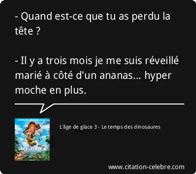 - Quand est-ce que tu as perdu la tête ? - Il y a trois mois je me suis réveillé marié à côté d'un ananas... hyper moche en plus.