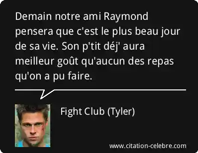 Demain notre ami Raymond pensera que c'est le plus beau jour de sa vie. Son p'tit déj' aura meilleur goût qu'aucun des repas qu'on a pu faire.