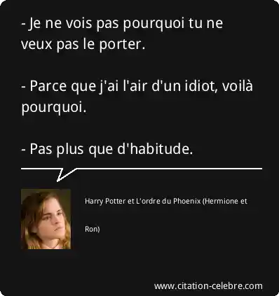 - Parce que j'ai l'air d'un idiot, voilà pourquoi.