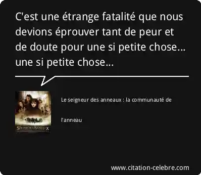 C'est une étrange fatalité que nous devions éprouver tant de peur et de doute pour une si petite chose... une si petite chose...