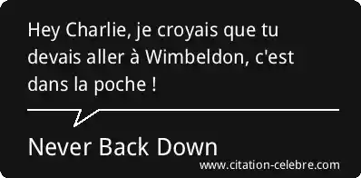 Hey Charlie, je croyais que tu devais aller à Wimbeldon, c'est dans la poche !