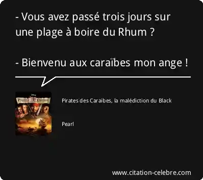 - Vous avez passé trois jours sur une plage à boire du Rhum ? - Bienvenu aux caraïbes mon ange !