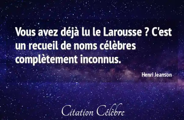 Vous avez déjà lu le Larousse ? C'est un recueil de noms célèbres complètement inconnus.