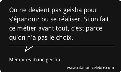 On ne devient pas geisha pour s'épanouir ou se réaliser. Si on fait ce métier avant tout, c'est parce qu'on n'a pas le choix.