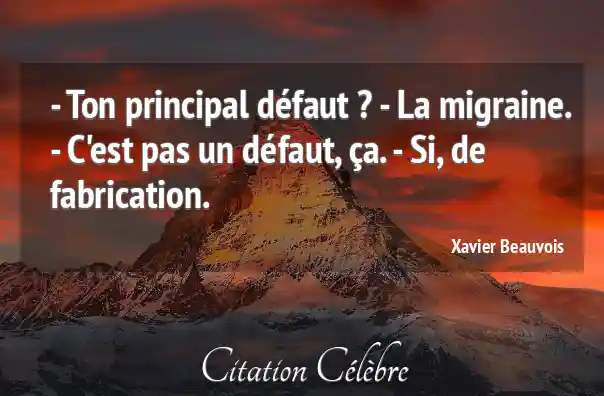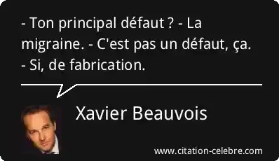 - Ton principal défaut ? - La migraine. - C'est pas un défaut, ça. - Si, de fabrication.
