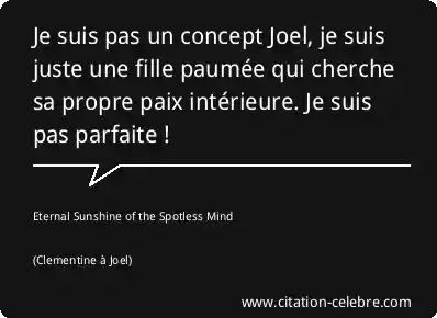 Je suis pas un concept Joel, je suis juste une fille paumée qui cherche sa propre paix intérieure. Je suis pas parfaite !