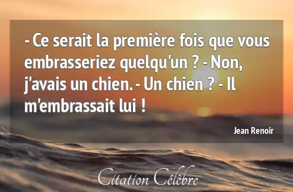 - Ce serait la première fois que vous embrasseriez quelqu'un ? - Non, j'avais un chien. - Un chien ? - Il m'embrassait lui !