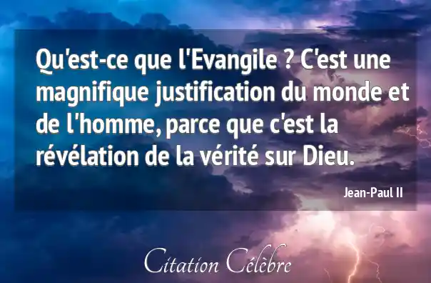 Qu'est-ce que l'Evangile ? C'est une magnifique justification du monde et de l'homme, parce que c'est la révélation de la vérité sur Dieu.