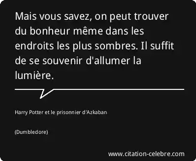 Mais vous savez, on peut trouver du bonheur même dans les endroits les plus sombres. Il suffit de se souvenir d'allumer la lumière.