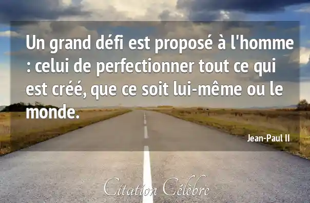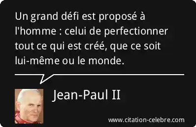 Un grand défi est proposé à l'homme : celui de perfectionner tout ce qui est créé, que ce soit lui-même ou le monde.