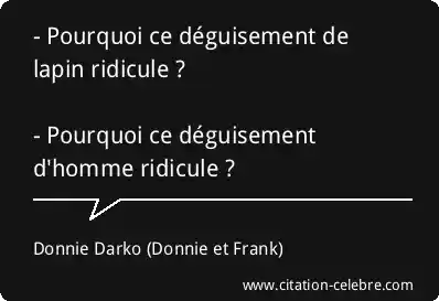 - Pourquoi ce déguisement de lapin ridicule ? - Pourquoi ce déguisement d'homme ridicule ?