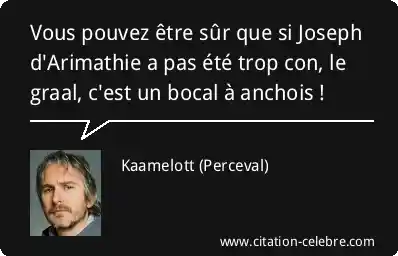 Vous pouvez être sûr que si Joseph d'Arimathie a pas été trop con, le graal, c'est un bocal à anchois !