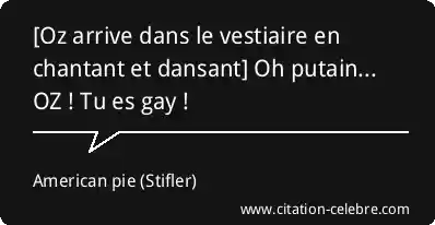 [Oz arrive dans le vestiaire en chantant et dansant] Oh putain... OZ ! Tu es gay !