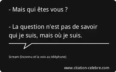 - Mais qui êtes vous ? - La question n'est pas de savoir qui je suis, mais où je suis.