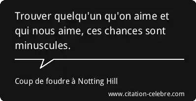 Trouver quelqu'un qu'on aime et qui nous aime, ces chances sont minuscules.