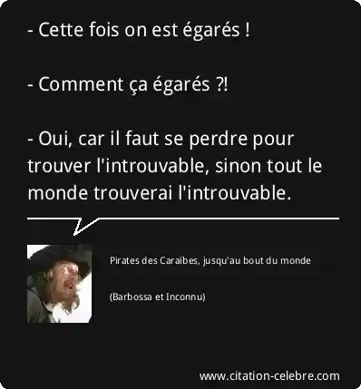 - Cette fois on est égarés ! - Comment ça égarés ?! - Oui, car il faut se perdre pour trouver l'introuvable, sinon tout le monde trouverai l'introuvable.
