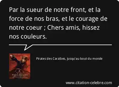Par la sueur de notre front, et la force de nos bras, et le courage de notre coeur ; Chers amis, hissez nos couleurs.