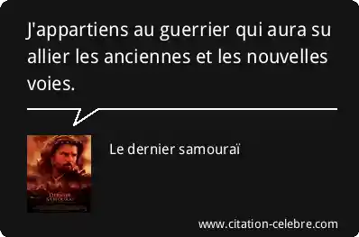 J'appartiens au guerrier qui aura su allier les anciennes et les nouvelles voies.
