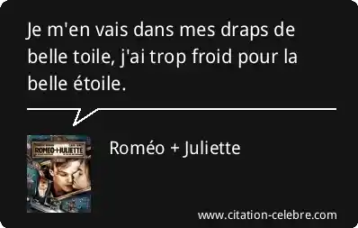 Je m'en vais dans mes draps de belle toile, j'ai trop froid pour la belle étoile.