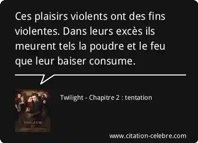 Ces plaisirs violents ont des fins violentes. Dans leurs excès ils meurent tels la poudre et le feu que leur baiser consume.