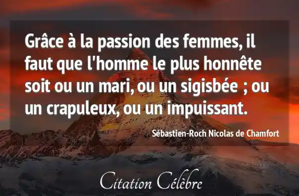 Grâce à la passion des femmes, il faut que l'homme le plus honnête soit ou un mari, ou un sigisbée ; ou un crapuleux, ou un impuissant.