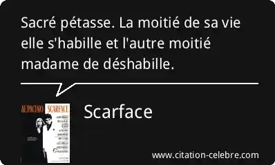 Sacré pétasse. La moitié de sa vie elle s'habille et l'autre moitié madame de déshabille.